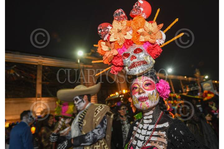 TOLUCA, ESTADO DE MÉXICO, 01NOVIEMBRE2023.- Catrinas y Catrines recorrieron las calles de Toluca como parte de Catrineando 2023, que busca recatar las tradiciones en el Día de Muertos, un evento en donde participa la población en general, este recorrido nació en el 2011 y que con el paso de los años el número de participantes ha aumentado, llegando a convocar a más de 16 mil personas. Este año contaron con la participación de 115 carros alegóricos. FOTO: CRISANTA ESPINOSA AGUILAR /CUARTOSCURO.COM