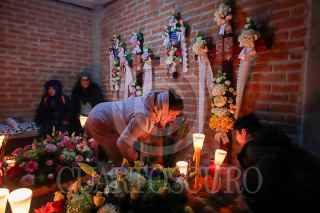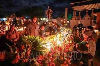 XOCHITLÁN TODOS SANTOS, PUEBLA, 2NOVIEMBRE2023.- Familias de Xochitlán Todos Santos acompañan con flores y velas en el panteón municipal a sus seres queridos que han fallecido y, según la creencia, regresan a convivir en este Día de Muertos. FOTO: MIREYA NOVO/CUARTOSCURO.COM