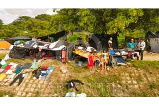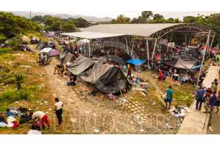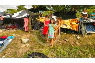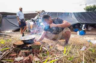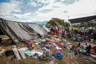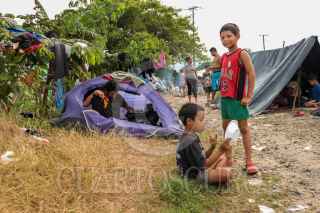 HUIXTLA, CHIAPAS, 02NOVIEMBRE2023.- La personas migrantes, en su mayoría Hondureños, acampan en el margen del río Huixtla. Entre la multitud de personas se observan menores de edad quienes vienen con sus padres. Mientras los menores descansan los papás preparan algun alimento para mitigar el hambre. FOTO: DAMIÁN SÁNCHEZ/CUARTOSCURO.COM