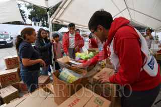 TOLUCA, ESTADO DE MÉXICO, 02NOVIEMBRE2023.- Continúa llegando el apoyo al Centro de Acopio de Cruz Roja Delegación Toluca, la población sigue llevando víveres para los damnificados por el huracán Otis en el estado de Guerrero, en el Estado de México fueron abiertos 5 centros de acopio por parte de Cruz Roja Edoméx, en Toluca, Naucalpan, Lilas, Huixquilucan y Cuatitlán. FOTO: CRISANTA ESPINOSA AGUILAR /CUARTOSCURO.COM