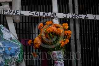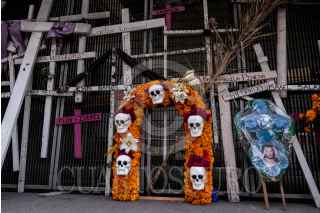 CIUDAD DE MÉXICO, 02NOVIEMBRE2023.- En las inmediaciones de la estación Olivos de la Línea 12 del Sistema de Transporte Colectivo (STC) Metro se colocó una pequeña ofrenda para recordar a las víctimas de la tragedia del 03 de mayo de 2021. Lo anterior en el marco de las celebraciones por Día de Muertos en la capital del país. FOTO: GALO CAÑAS/CUARTOSCURO.COM