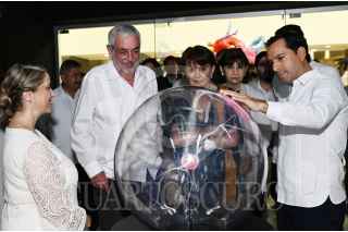 MÉRIDA, YUCATÁN, 02NOVIEMBRE2023.- El Museo de la Luz de la Universidad Nacional Autónoma de México (UNAM) llega a la ciudad de Mérida como el primero de Divulgación de la Ciencia fuera del campus central y de la Ciudad de México. Su construcción es un esfuerzo que reúne a la Universidad Nacional y al gobierno de Yucatán, para fortalecer la cultura y la educación en la entidad. El rector Enrique Graue Wiechers y el gobernador del estado, Mauricio Vila Dosal, inauguraron el recinto, ubicado en el Gran Parque La Plancha, el cual será un espacio que dé eco a propuestas locales, nacionales e internacionales, científicas, artísticas y culturales. Un ámbito museístico donde confluyen voces, temáticas e ideas que permitirán a los diferentes públicos reflexionar, aprender, explorar y dialogar sobre el impacto de la investigación científica y el desarrollo tecnológico en nuestras vidas. FOTO: UNAM/CUARTOSCURO.COM