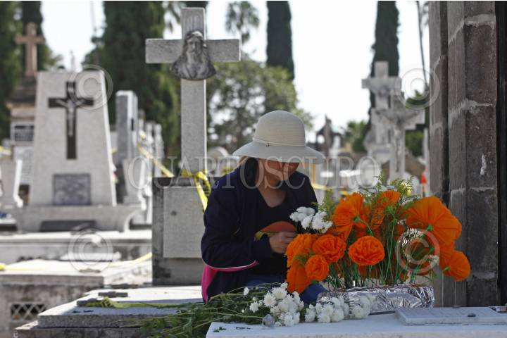 GUADALAJARA, JALISCO. 02NOVIEMBRE2023.- Cientos de personas acudieron a los diversos Panteones del Área Metropolitana, para visitar y llevar ofrendas a sus difuntos este Día de Muertos. FOTO: FERNANDO CARANZA GARCIA / CUARTOSCURO.COM