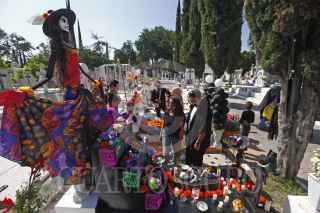 GUADALAJARA, JALISCO. 02NOVIEMBRE2023.- Cientos de personas acudieron a los diversos Panteones del Área Metropolitana, para visitar y llevar ofrendas a sus difuntos este Día de Muertos. FOTO: FERNANDO CARANZA GARCIA / CUARTOSCURO.COM