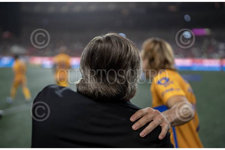 TIJUANA, BAJA CALIFORNIA, 01OCTUBRE2023.- Los Xolos de Tijuana se enfrentaron a los Tigres de la UANL, en partido correspondiente a la Jornada 14 del Torneo de Apertura 2023 de la Liga Mx. El marcador final fue a favor del equipo local con marcador de 2-0. En la imagen se muestra el técnico de Xolos, Miguel Herrera saludando a sus ex jugadores. FOTO: OMAR MARTÍNEZ/ CUARTOSCURO.COM