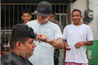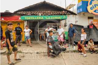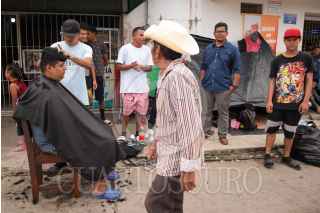 HUIXTLA, CHIAPAS, 03NOVIEMBRE2023.- Yenson es un joven migrante de Honduras quien tuvo que abandonar su país por la inseguridad. Ya en territorio mexicano a decidido instalar una barbería en la calles de la entidad chiapaneca, en donde cobra $50 pesos por corte se cabello, para obtener algo de sustento. A su vez, viaja con un grupo de amigos que buscan llegar a la frontera norte a fin de mejorar su calidad de vida. FOTO: DAMIÁN SÁNCHEZ/CUARTOSCURO.COM