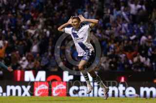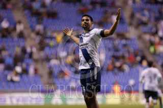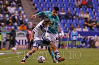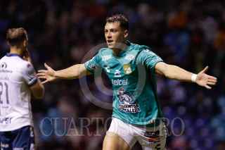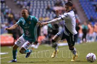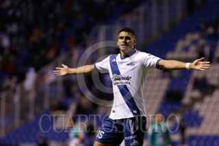 PUEBLA, PUEBLA, 20OCTUBRE2023.- Miguel Sansores durante el partido entre el Club Puebla y los esmeraldas de León en que los de la franja se impusieron 5-4, correspondiente a la jornada 16 del torneo Apertura 2023 de la Liga BBVA MX, celebrado en el estadio Cuauhtémoc.. FOTO: MIREYA NOVO/ CUARTOSCURO.COM