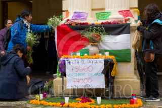 SAN CRISTÓBAL DE LAS CASAS, CHIAPAS, 04NOVIEMBRE2023.- Decenas de personas de la sociedad civil organizada realizaron una acción pacífica en las inmediaciones del Museo de San Cristóbal en solidaridad al pueblo de Palestina y exigir cese al bombardeo del ejército israelí al territorio de Gaza. FOTO: ISABEL MATEOS/CUARTOSCURO.COM
