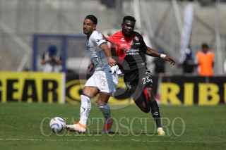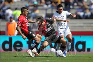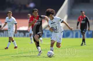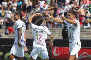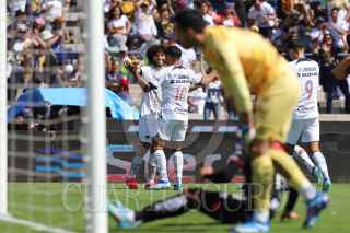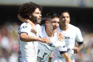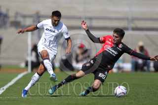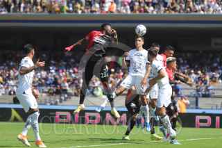 CIUDAD DE MÉXICO, 05NOVIEMBRE2023. Juan Dinenno de Pumas remata una pelota en un tiro de esquina durante el partido de fútbol Pumas vs Atlas correspondiente a la jornada 11 del Torneo Apertura 2023 de Liga BBVA MX, en el Estadio Olímpico Universitario. FOTO: EDGAR NEGRETE/CUARTOSCURO.COM