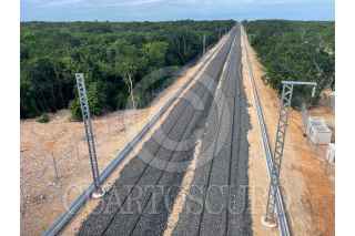 VALLADOLID, YUCATÁN, 05NOVIEMBRE2023.- Avances del proyecto del Tren Maya en la carretera Valladolid-Cancún muestran el progreso de una la obra emblemática de la 4T, la cual promoverá conectividad y desarrollo en la región peninsular. FOTO: ELIZABETH RUIZ/CUARTOSCURO.COM