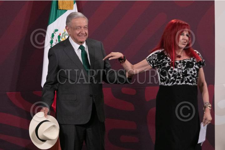 CIUDAD DE MÉXICO, 06NOVIEMBRE2023.- Andrés Manuel López Obrador, Presidente de México, y Layda Sansores, gobernadora de Campeche, aseguraron que el próximo 15 de noviembre se pondrá en marcha el Tren Maya, durante la mañanera. FOTO: MOISES PABLO/CUARTOSCURO.COM