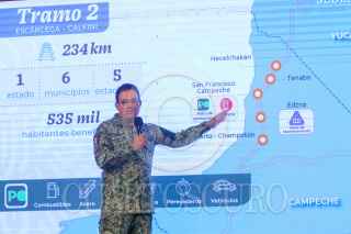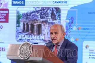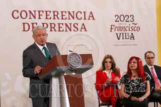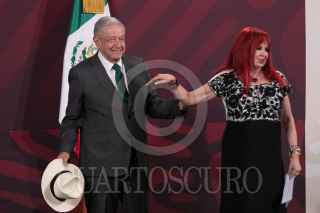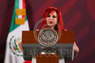 CIUDAD DE MÉXICO, 06NOVIEMBRE2023.- Maite Ramos Gómez, directora general de Alstom México, aseguro que la mayoría de sus proveedores son nacionales para la construcción de los vagones del Tren Maya, durante la mañanera. FOTO: MOISES PABLO/CUARTOSCURO.COM