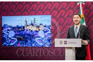 CIUDAD DE MÉXICO, 06NOVIEMBRE2023.- Martí Batres Guadarrama, jefe del Gobierno de la Ciudad, hablo sobre el apoyo del traslado de pasajeros del Metro ahora que se ha cerrado de Balderas a Observatorio de la linea 1 del Sistema de Transporte Colectivo. En la sala Francisco Zrco del Palacio del Ayuntamiento, lo acompaña Andrés Lajous Loaeza, titular de Movilidad de la Capital. FOTO: GOBIERNO DE LA CIUDAD/CUARTOSCURO.COM