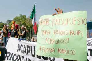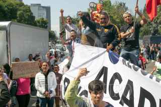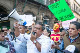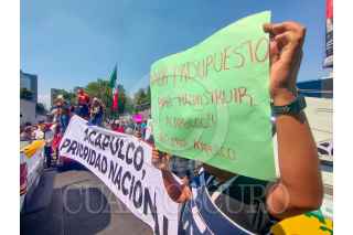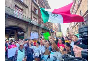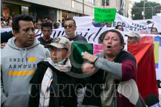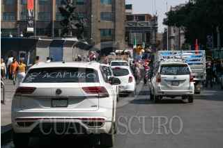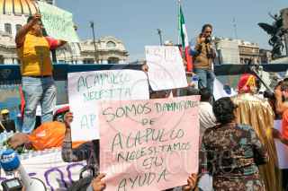 CIUDAD DE MÉXICO, 06NOVIEMBRE2023.- Habitantes de Acapulco arribaron al primer cuadro de la capital para exigirle al gobierno capitalino recursos y ayuda por la emergencia provocada por el paso del huracán Otis. Los afectados denunciaron que la policía capitalina los estuvo hostigando todo el camino para evitar que llegarán a Palacio Nacional, el contingente que estaba compuesto por dos camiones del transporte tradicionales del puerto y 20 automóviles que fueron retenidos sobre avenida Juárez, por lo que tuvieron que llegar caminando. Los ahí presentes exigieron que se etiqueten recursos en el presupuesto. FOTO: MOISÉS PABLO/CUARTOSCURO.COM