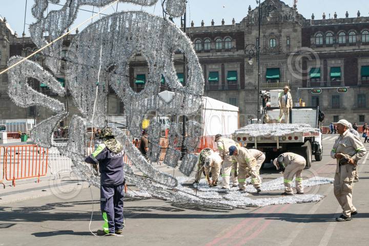 cIUDAD DE MÉXICO, 06NOVIEMBRE2023.- Trabajadores capitalinos se apresuran a quitar las calaveras hornamentales que vistieron el Zócalo por los festejos del Día de Muertos. FOTO: MOISÉS PABLO/CUARTOSCURO.COM