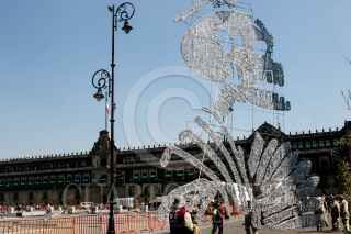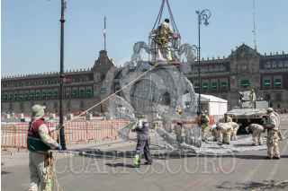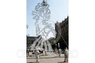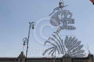cIUDAD DE MÉXICO, 06NOVIEMBRE2023.- Trabajadores capitalinos se apresuran a quitar las calaveras hornamentales que vistieron el Zócalo por los festejos del Día de Muertos. FOTO: MOISÉS PABLO/CUARTOSCURO.COM