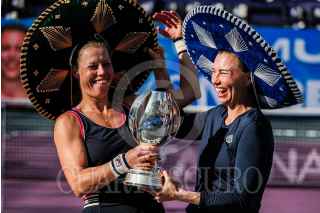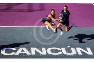 CANCÚN, QUINTANA ROO.- Laura Siegemund (Alemania) y Vera Zvonareva (Rusia) campeonas de la WTA Finals Cancún, en la modalidad de dobles. La edición 2023 de las Finales WTA regresa a México y se celebrará en Cancún por primera vez. El torneo se jugará en pista dura al aire libre y se utilizará la pelota Wilson US Open Regular Duty. FOTO: ELIZABETH RUIZ/CUARTOSCURO.COM