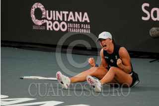 CANCÚN, QUINTANA ROO, 06NOVIEMBRE2023.- La polaca Iga Swiatek se convirtió en la nueva reina del tenis mundial, luego de vencer en dos sets a la estadunidense Jessica Pegula,ven el WTA Finals Cancún. FOTO: CUARTOSCURO.COM