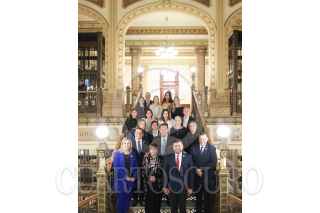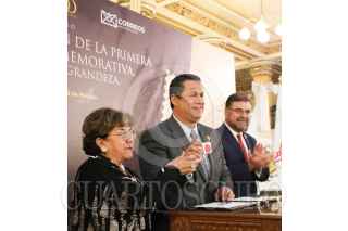 CIUDAD DE MÉXICO, 06NOVIEMBRE2023.- Rocío Bárcena Molina, directora general de SEPOMEX, y Diego Sinhue Rodríguez Vallejo, gobernador de Guanajuato, encabezaron la ceremonia de cancelación de la primavera estampilla postal conmemorativa "Guanajuato 200 Años de Grandeza", en el Palacio Nacional. FOTO: JORGE ORTEGA/CUARTOSCURO.COM