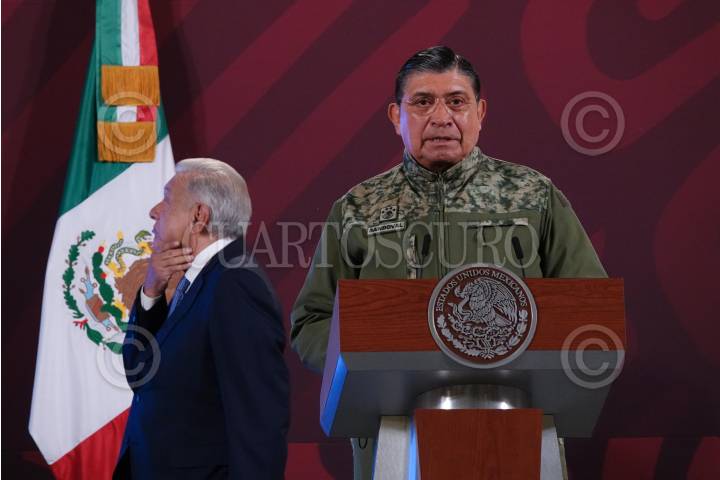 CIUDAD DE MÉXICO, 07NOVIEMBRE2023.- Luis Cresencio Sandoval, titular de la Secretaria de la Defensa Nacional, durante la conferencia mañanera en Palacio Nacional. FOTO: GRACIELA LÓPEZ /CUARTOSCURO.COM