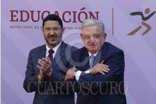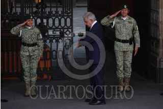 CIUDAD DE MÉXICO, 07NOVIEMBRE2023.- Andrés Manuel López Obrador, presidente de México, se despide de deportistas durante el termino del Abanderamiento de la Delegación Mexicana Parapanamericanos Santiago de Chile 2023, realizado en el patio de Palacio Nacional. FOTO: GRACIELA LÓPEZ/CUARTOSCURO.COM