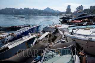 ACAPULCO, GUERRERO, 07NOVIEMBRE2023.- Decenas de yates y embarcaciones continúan varadas en las inmediaciones del Club de Yates de Acapulco, Guerrero, tras el impacto del Huracán Otis. Se comenta que gran parte de los desaparecidos y fallecidos trabajaban a bordo de las naves y fueron alcanzadas por el fenómeno mientras aún estaban a bordo. FOTO: GALO CAÑAS/CUARTOSCURO.COM