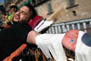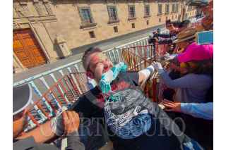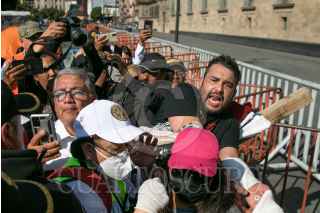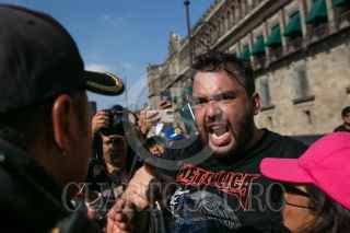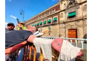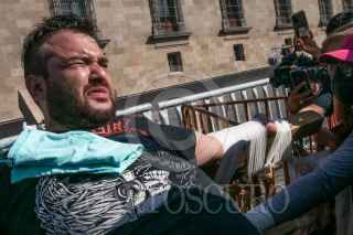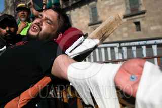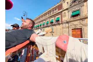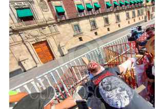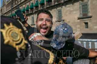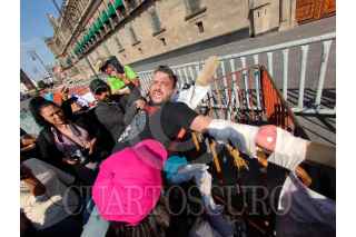 CIUDAD DE MÉXICO, 07NOVIEMBRE2023.- Óscar Kábata, víctima de violaciones a sus derechos.por parte de miembros del Ejército y testigo del asesinato de su amigo, se crucifico frente a Palacio Nacional, en la cual grito que el Presidente de México, Andrés Manuel López Obrador, le había fallado a las promesas de reparación del daño. La víctima venía acompañado de varias mujeres que también han sufrido violencia y que actualmente están en campamento afuera de la Secretaría de Gobernación, ahí denunciaron que han sido constantemente hostigado por parte de funcionarios de esa dependencia. FOTO: MOISÉS PABLO/CUARTOSCURO.COM