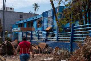 ACAPULCO, GUERRERO, 07NOVIEMBRE2023.- Aspectos la escuela primaria Manuel Ávila Camacho sobre la avenida Costera la cual presenta daños y árboles caídos a su alrededor, así como el techo desplomado. FOTO: GALO CAÑAS/CUARTOSCURO.COM