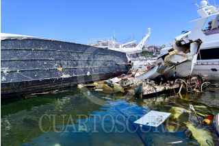 ACAPULCO, GUERRERO. 07NOVIEMBRE2023.-Diferentes embarcaciones desde pequeñas lanchas y hasta yates de lujo, se encuentran destrozadas y varadas en una playa entre La Marina Acapulco y El Club de Yates de Acapulco, una de las zonas más afectadas por el huracán Otis, también unas de las zonas en dónde más muertos y desaprecidos sean reportado, todos trabajandores de yates y lanchas, también el gobierno ha mantenido mucho ermetismo en esas zonas restringiendo el paso a medios de comunicación, y personas que buscan a sus familiares desaparecidos. FOTO: CARLOS CARBAJAL/CUARTOSCURO.COM