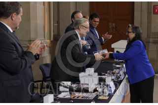 CIUDAD DE MÉXICO, 07NOVIEMBRE2023.- La ministra presidenta de la Suprema Corte de Justicia de la Nación (La Corte), Norma Lucía Piña Hernández, fue reconocida por 35 años de trayectoria jurisdiccional, durante la Ceremonia de Entrega de Medallas y Reconocimientos por años de servicio en el Poder Judicial de la Federación 2023, donde también recibieron el reconocimiento otras 64 personas trabajadoras del PJF de diversas áreas. En su discurso de reconocimiento a la labor de todas y todos los trabajadores que recibieron la medalla, el ministro de La Corte, Jorge Mario Pardo Rebolledo, destacó que la Ministra Presidenta es una funcionaria judicial destacada que recibe un justo reconocimiento de trabajo y compromiso por la “entrega, capacidad, profesionalismo, honestidad y excelencia a quien, pienso yo que, por esos atributos, el destino la ha colocado en el sitial más delicado y trascendente en una etapa inédita para nuestra institución”. FOTO: SCJN/CUARTOSCURO.COM