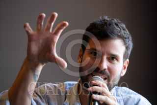 CIUDAD DE MÉXICO, 08NOVIEMBRE2023.- Willy Bárcenas durante la conferencia de prensa con el dueto español "Taburete", banda que se presentará en el Frontón México para dar muestrab de su mas reciente producción "Matadero 5". FOTO: EDGAR NEGRETE LIRA/CUARTOSCURO.COM
