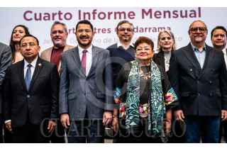CIUDAD DE MÉXICO, 08NOVIEMBRE2023.- El jefe del Gobierno de la Ciudad; Martí Batres Guadarrama, durante el informe mensual de Gobierno en el patio Central del Palacio del Ayuntamiento. Integrantes de su gabinete le acompañaron el la rendición de labores al frente ejecutivo local. FOTO: GOBIERNO DE LA CIUDAD/CUARTOSCURO.COM