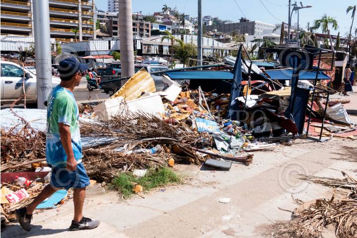 ACAPULCO, GUERRERO, 08NOVIEMBRE2023.- La recolección de basura se ha convertido en una tarea monumental en Acapulco tras el paso del huracán Otis. Según informó la gobernadora Evelyn Salgado Pineda las calles acumulan toneladas de residuos y equivale a los desperdicios de dos años tras el paso del huracán Otis. FOTO: GALO CAÑAS/CUARTOSCURO.COM