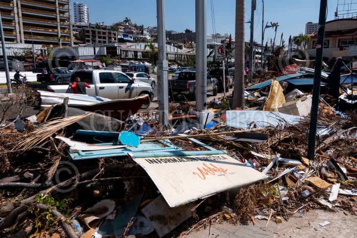 ACAPULCO, GUERRERO, 08NOVIEMBRE2023.- La recolección de basura se ha convertido en una tarea monumental en Acapulco tras el paso del huracán Otis. Según informó la gobernadora Evelyn Salgado Pineda las calles acumulan toneladas de residuos y equivale a los desperdicios de dos años tras el paso del huracán Otis. FOTO: GALO CAÑAS/CUARTOSCURO.COM
