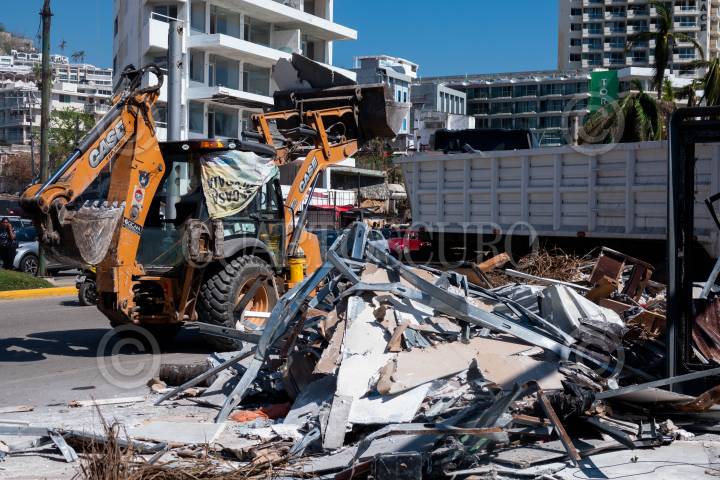 ACAPULCO, GUERRERO, 08NOVIEMBRE2023.- La recolección de basura se ha convertido en una tarea monumental en Acapulco tras el paso del huracán Otis. Según informó la gobernadora Evelyn Salgado Pineda las calles acumulan toneladas de residuos y equivale a los desperdicios de dos años tras el paso del huracán Otis. FOTO: GALO CAÑAS/CUARTOSCURO.COM