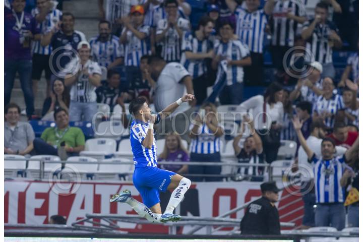GUADALUPE, NUEVO LEÓN, 08NOVIEMBRE2023.- Maximiliano Meza de los Rayados del Monterrey, festeja el gol, ante Santos, en el estadio BBVA, partido correspondiente a la jornada 10 de la Apertura 2023. Marcador Final: Monterrey 3 - Santos: 0 FOTO: GABRIELA PÉREZ MONTIEL / CUARTOSCURO.COM