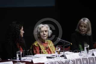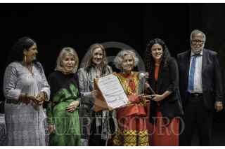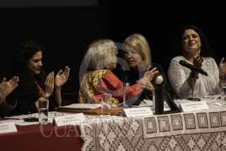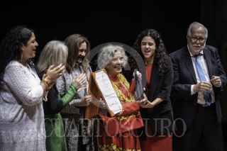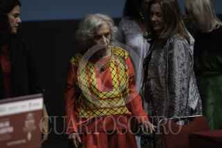 CIUDAD DE MÉXICO, 09NOVIEMBRE2023.- Marina Núñez, subsecretaria de desarrollo Cultural; Ross Beltrán, coordinadora de Difusión Cultural; Luisa María Alcalde, secretaria de Gobernación; Elena Poniatowska, escritora; Silvia Lemus, periodista; Alejandra Frausto, secretaria de Cultura; Javier García Diego, escritor durante entrega de premio Carlos Fuentes a Elena Poniatowska y se llevó a cabo en el Palacio de Bellas Artes. FOTO: ANDREA MURCIA /CUARTOSCURO.COM