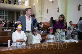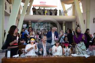 CIUDAD DE MÉXICO, 11NOVIEMBRE2023.- Sergio Mayer y su esposa Isabella Camil asistieron como padrinos de honor a un bautizo masivo con niños y niñas adolescentes rescatados de situaciones vulnerables, en la Iglesias Señora del Sagrado Corazón. FOTO: EDGAR NEGRETE LIRA/CUARTOSCURO.COM