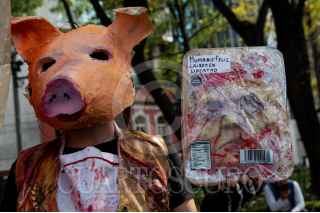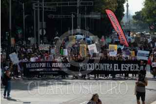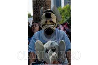 CIUDAD DE MÉXICO, 11NOVIEMBRE2023.- Organizaciones sociales en defensa de los derechos animales y contra el especismo se manifestaron del Ángel de la Independencia al Zócalo capitalino. Con pancartas, personificados como animales y una batucada las y los asistentes expresaron que la solución es el veganismo y que la empatía abarque a todas las especies animales y no sólo a los que son domésticos. FOTO: GALO CAÑAS/CUARTOSCURO.COM