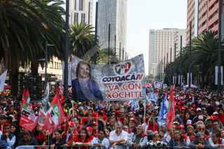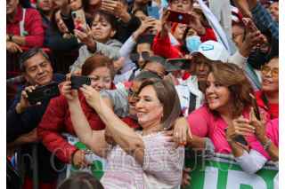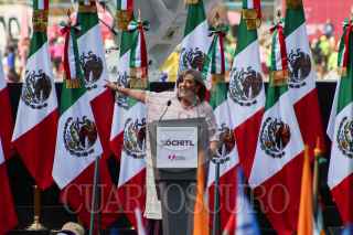 CIUDAD DE MÉXICO, 12NOVIEMBRE2023.- Xóchitl Gálvez, aspirante a la presidencia por el Frente Amplio por México (PAN, PRI, PRD), realizó un informe con simpatizantes a un costado del Monumento a la Revolución. FOTO: DENISSE HERNÁNDEZ/CUARTOSCURO.COM