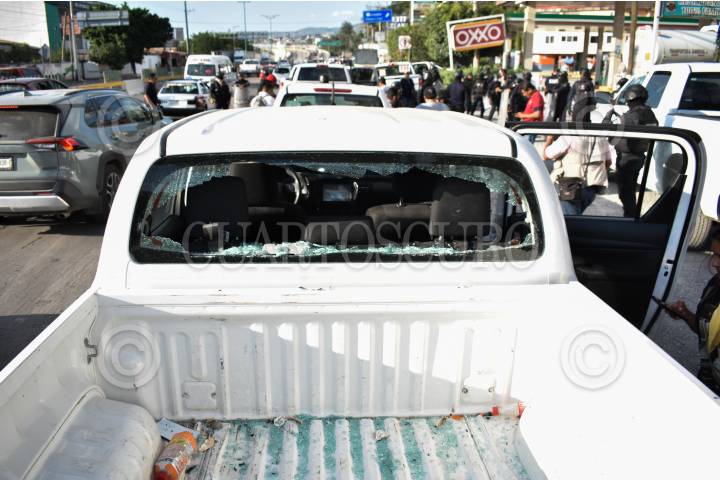 CHILPANCINGO, GUERRERO, 12NOVIEMBRE2023.- Estudiantes de la Normal Rural Raúl Isidro Burgos de Ayotzinapa cerraron de manera intermitente por casi 5 horas la Autopista del Sol, en la zona sur de la capital de Guerrero, para exigir entrega de plazas y material didáctico. Los inconformes desvalijaro camionetas de las caravanas del Bienestar que viajan a Acapulco y que intentaron llevar a su escuela. Dentro de su protesta los jóvenes retuvieron un grupo de 10 camionetas en las que viajaban Servidores de la Nación, provenientes de al menos 7 estados del país que regresaban del Puerto de Acapulco, además de que dos de ellas pertenecen al Sistema Nacional de Protección Civil. Representantes de la Secretaría de Gobernación del Estado acudieron al bloqueo para dialogar a los estudiantes, a quienes solicitaron la liberación de las camionetas que se utilizan para realizar brigadas de entrega se víveres al puerto de Acapulco. Una comisión de manifestantes fue recibida por autoridades educativas para negociar la liberación de la vía federal. En total nueve camionetas de la Secretaría del Bienestar fueron retenidas. FOTO: DASSAEV TÉLLEZ ADAME/CUARTOSCURO.COM