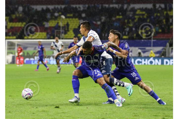 CIUDAD DE MÉXICO, 12NOVIEMBRE2023.- Los jugadores Juan escobar, Rodrigo Huescas durante el partido el Estadio Azteca Cruz azul vs Puebla queda marcador 1-2 ganando Puebla. FOTO: ANDREA MURCIA /CUARTOSCURO.COM