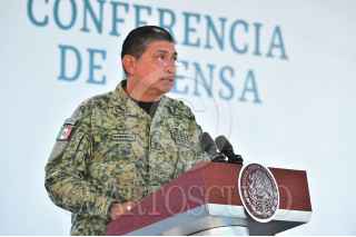 CAJEME, SONORA, 13NOVIEMBRE2023.- Luis Cresencio Sandoval González, secretario de la Defensa Nacional durante la conferencia de prensa matutina desde Sonora. Donde también participaron: Rosa Icela Rodríguez Velázquez, secretaria de Seguridad y Protección Ciudadana; Alfonso Durazo Montaño, gobernador del estado de Sonora; Luisa María Alcalde Luján, secretaria de Gobernación; José Rafael Ojeda Durán, secretario de Marina; Alicia Bárcena Ibarra, secretaria de Relaciones Exteriores; David Córdova Campos, comandante de la Guardia Nacional y David Aguilar Romero, titular de la Procuraduría Federal del Consumidor (Profeco) FOTO: PRESIDENCIA/CUARTOSCURO.COM