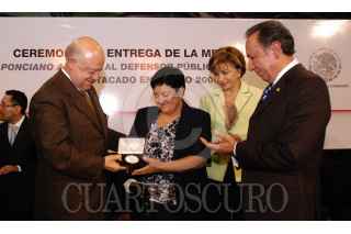 MÉXICO D.F. 28MAYO2007.-El magistrado presidente de la Suprema Corte de Justicia de la Nación (SCJN) Guillermo Ortiz Mayagoitia entregó la medalla Ponciano Arriaga a Matha Gómez Vazquez, defensora pública más destacada del 2006. FOTO: VICTOR ORTIZ/CUARTOSCURO.COM