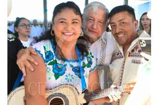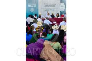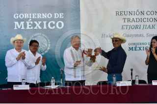 GUAYMAS, SONORA, 13NOVIEMBRE2023.- Andrés Manuel López Obrador, presidente de México, encabezó la reunión con autoridades tradicionales yaquis en Polideportivo Huírivis. FOTO: PRESIDENCIA/CUARTOSCURO.COM