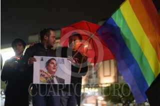XALAPA, VERACRUZ, 13NOVIEMBRE2023.- Comunidad LGBTQ de Xalapa realizó una concentración pacífica en la plaza Lerdo para exigir justicia por la muerte de le magistrade de Aguascalientes, Jesús Ociel Baena y su pareja. Las, los y les asistentes acudieron con banderas de la comunidad LGBT+, Trans y no binario. FOTO: YERANIA ROLÓN/CUARTOSCURO.COM