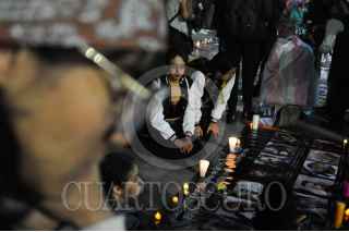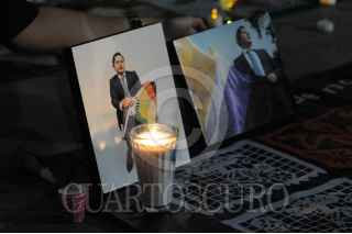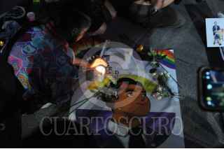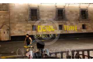 CIUDAD DE MÉXICO,13NOVIEMBRE2023.- Integrantes de la comunidad LGBT+ pintaron el nombre de Ociel en la fachada de Palacio Nacional.FOTO: DANIEL AUGUSTO/CUARTOSCURO.COM