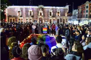 AGUASCALIENTES, AGUASCALIENTES, 13NOVIEMBRE2023.- Cientos de personas se concentraron frente al Palacio de Gobierno de la entidad para exigir justicia por el asesinato del magistrade Jesús Ociel Baena Saucedo, luego de ser localizade sin vida la mañana de este día, junto a su pareja Dorian Daniel Nieves Herrera. La Fiscalía del Estado ha mencionado que las primeras investigaciones llevaría a que nadie más entró a la casa ubicada en la privada Punta del Cielo y que muy probablemente elles se lesionaron mortalmente. FOTO: CHRISTIAN DE LIRA/CUARTOSCURO.COM