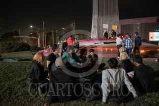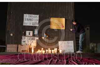 TIJUANA, BAJA CALIFORNIA, 13NOVIEMBRE2023.- De manera simultánea a nivel Nacional, personas se reunieron para honrrar la memoria del “Magistrade”, Jesús Ociel Baena Saucedo, quien fue encontrado sin vida esta mañana al interior de una vivienda en Aguas Calientes. Con veladoras en manos, carteles y banderas, decenas de personas de Tijuana se unieron a la protesta, en el monumento de las Tijeras en Zona Río, exigiendo justicia por Baena. Jesus Ociel, fue el primer “Magistrade electoral” no binarie de Latinoamérica y un activista que luchaba y protegía los derechos de las comunidad LGBT+.“Coraje, miedo y tristeza por no poder ser y amar a quien yo quiero”, expreso sentir Leonardo Peña, manifestante, que demostró desanimo por la poca afluencia de los asistentes. FOTO: OMAR MARTÍNEZ/ CUARTOSCURO.COM