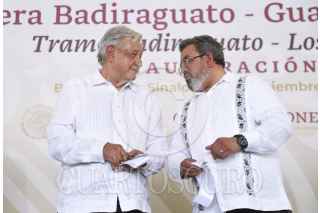 BADIRAGUATO, SINALOA, 14NOVIEMBRE2023.- Rubén Rocha Moya, gobernador de Sinaloa, durante la inauguración de la Carretera Badiraguato – Guadalupe y Calvo, tramo Badiraguato – Los Frailes. El mandatario estuvo acompañado por: Juan Pablo de Botton Falcón, subsecretario de Egresos de la Secretaría de Hacienda y Crédito Público, y José Paz López Elenes, presidente municipal de Badiraguato, Sinaloa. FOTO: PRESIDENCIA/CUARTOSCURO.COM
